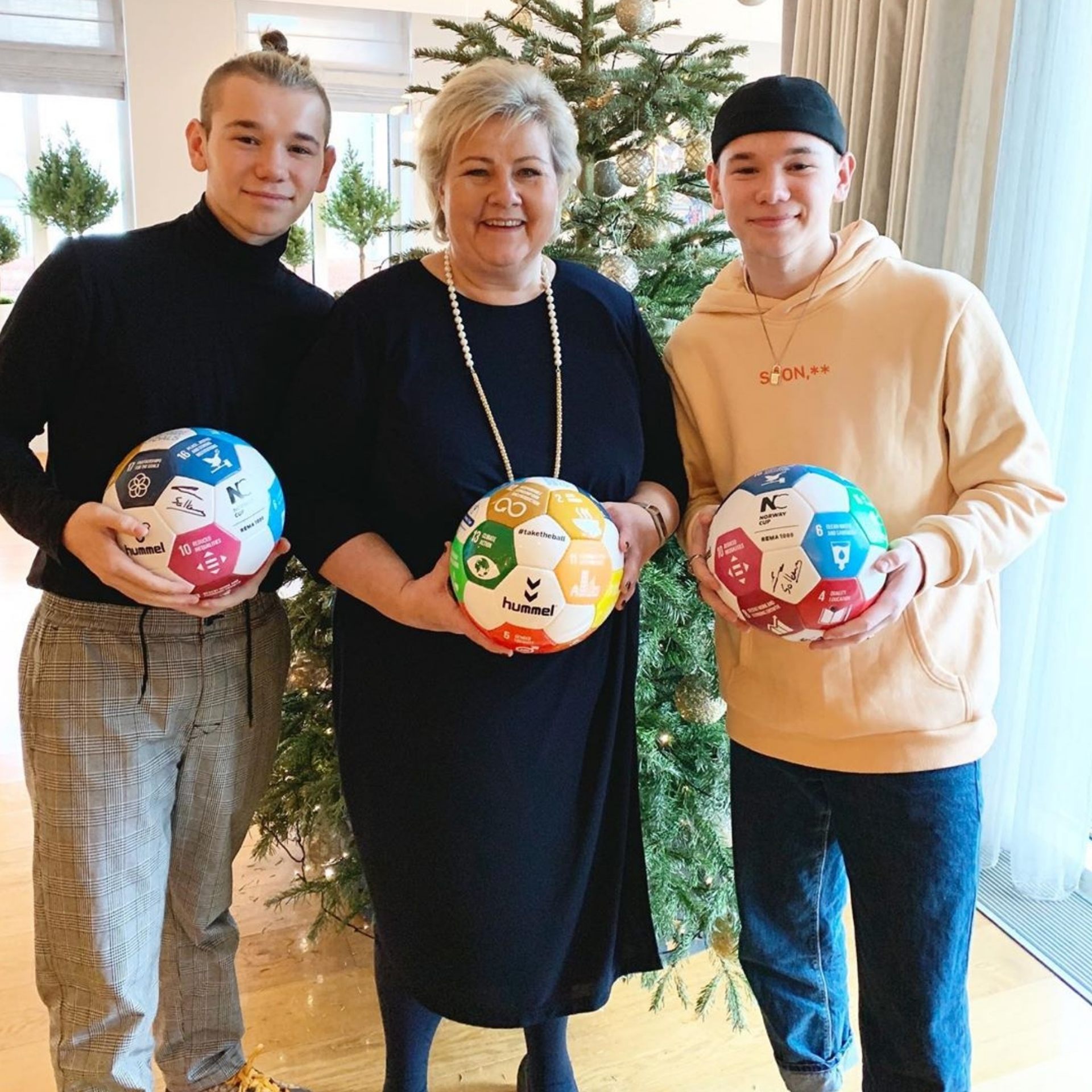 - In July 2019, they joined with the prime minister of Norway, Erna Solberg, a campagne based on a football which "included" all of UN's Sustainable Goals. They helped in developing it, aiming for stopping the pollution of the oceans and providing free and quality education all around the world, by promoting the hastag of the campagne, #taketheball, on their instagam account.